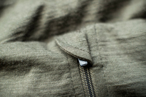 The raglan sleeves provide seamless shoulders while the flat lock stitching allows layering without bulky seams. The generous cuffs with thumb loops keep the sleeves in place and the high neck zipper allows venting when required but also traps in warmth and protects the neck area against cold or abrasive outer layers.